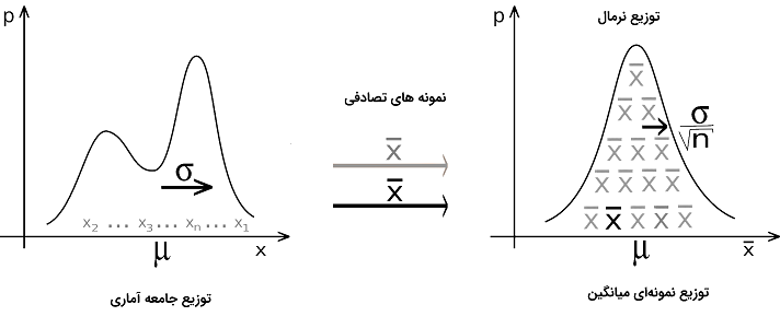 جمع n متغیر تصادفی مستقل تقریبا نرمال خواهد بود، بدن اینکه نیازی به در نظر گرفتن توزیع هر یک از متغیر ها باشد. هر چه اندازه نمونه n افزایش یابد، نتیجه حاصل از این تقریب بهتر خواهد شد.